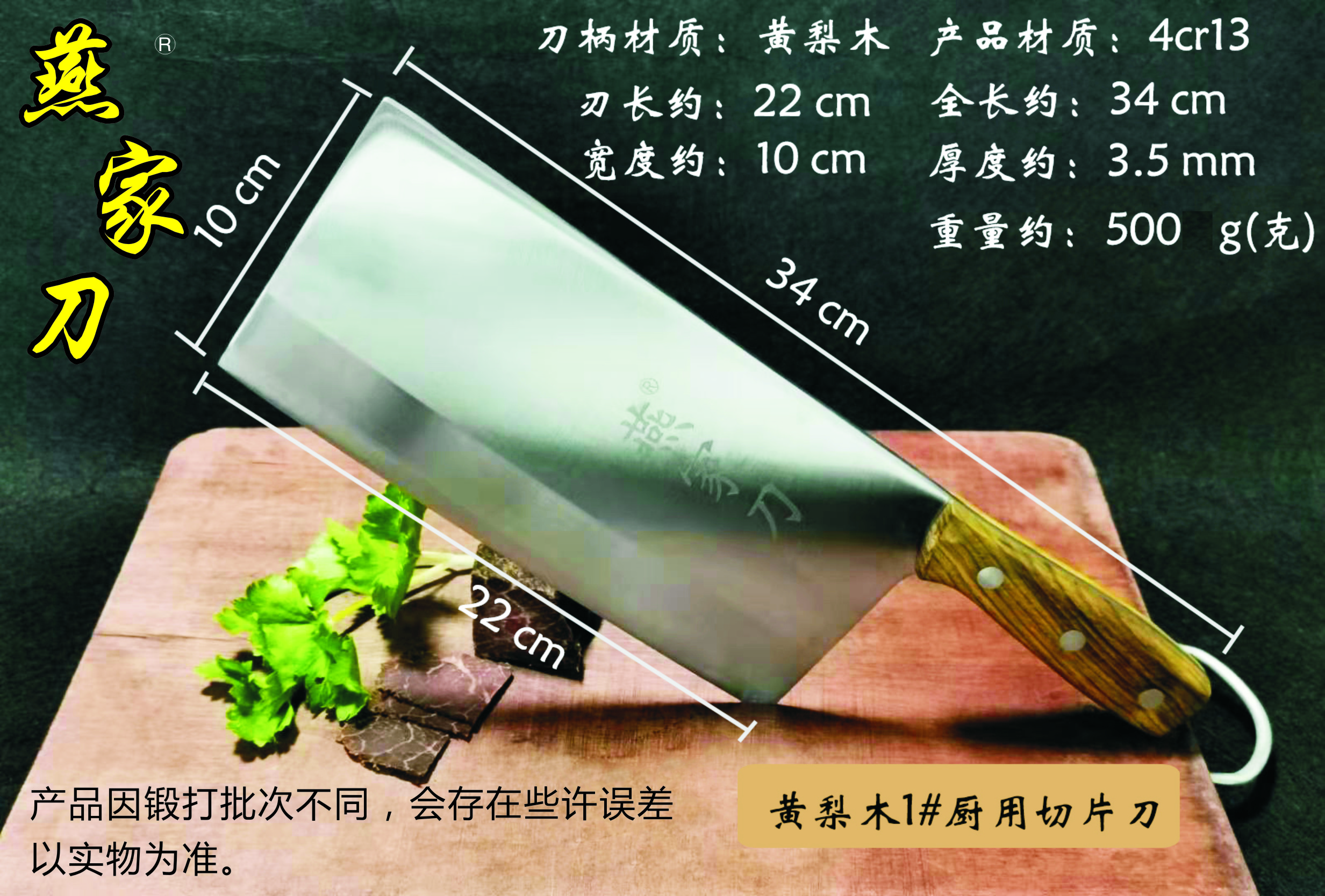 樂山燕家刀具有限公司(公司前身為燕佳鐵匠鋪),公司坐落于美麗的佛都之鄉(xiāng)樂山嘉州,在全國各地有上千家代理經(jīng)銷點,公司專業(yè)銷售、設計、制作各類刀具。秉承一貫鍛造三精要求,即選料精、用料精、工藝精。所選材料全部產(chǎn)自滇東鐵礦優(yōu)產(chǎn)區(qū)。本品牌刀具堅持千挑萬選為材,千錘百煉為刀的手工鍛造工藝宗旨。具有鋒利耐磨、持久耐用,用料上乘,硬度高、韌度強的特點!